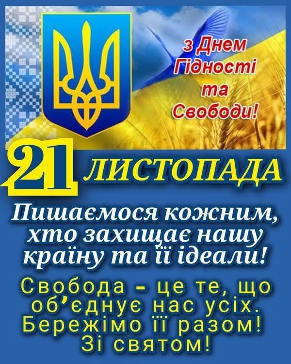 21 листопада Україна відзначає День Гідності та Свободи, встановлений на честь двох знаменних і доленосних подій у новітній історії України: Помаранчевої революції 2004 року та Революції Гідності (листопад 2013 року – лютий 2014 року)